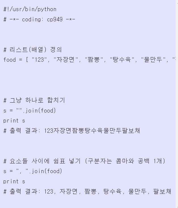 * join: 리스트 내용을 하나로 합쳐줌