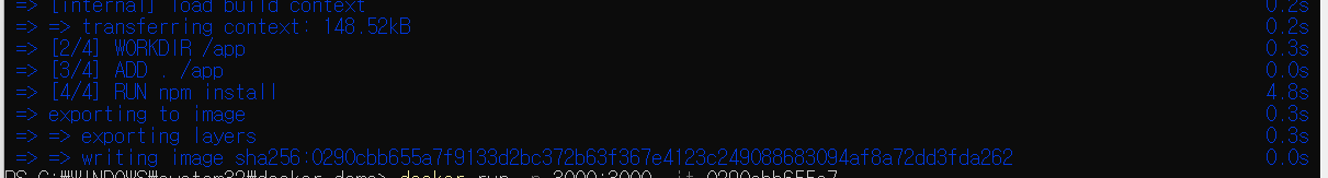 dockerfile로 설정한 것들이 제대로 생성?되었다는 것 같음