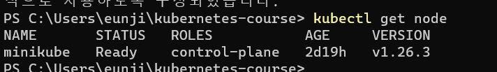 minikube 설치 확인 (쿠버네티스 클러스터에 명령을 내리기 위해 필요한 쿠버네티스 커맨드 라인 도구인kubectl 또한 설치됨)