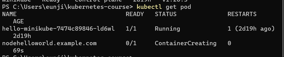 클러스터를 설치할 때 시작한 파드와 방금 만든 파드를 확인