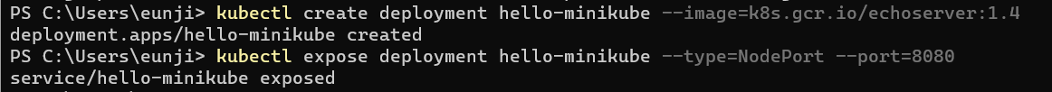 *도커 데스크탑이 이미 설치되어 있으면 minikube가 기본으로 docker driver를 사용