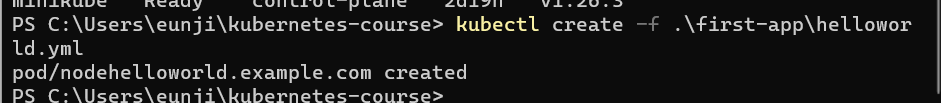 클러스터 생성 -> 쿠버네티스는 미니큐브가 생성하는 vm에서 실행 (이미지 다운)